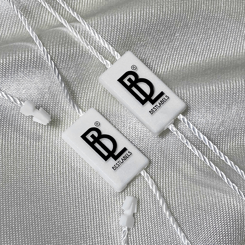 Custom plastic seal tag ST-M183 for fashion products, such as clothes, footwear, bags, jewelry, clothing accessories, etc.