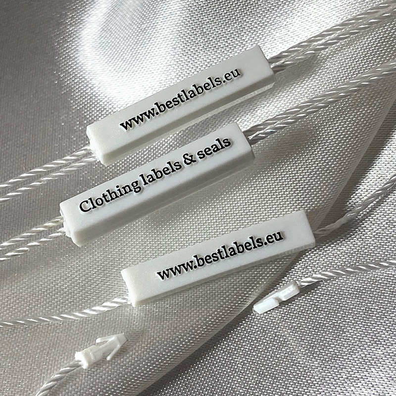 Custom plastic seal tag ST-M202 for fashion products, such as clothes, footwear, bags, jewelry, clothing accessories, etc.