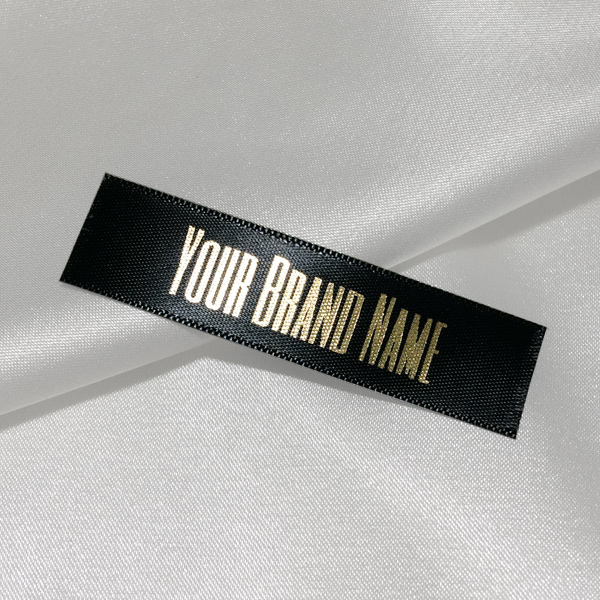Custom label TL-M130 printed on satin fabric suitable for clothing, clothes accessories, and other textile products.