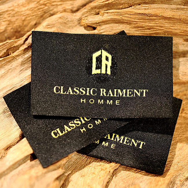 Textile label ideal for clothes but also for other textile products model Rich Style, Digital embroidered with a custom text and logo in a variety of colors. This type of woven label is made of high quality materials, using the most advanced technologies from Digital embroidery field at industrial level.